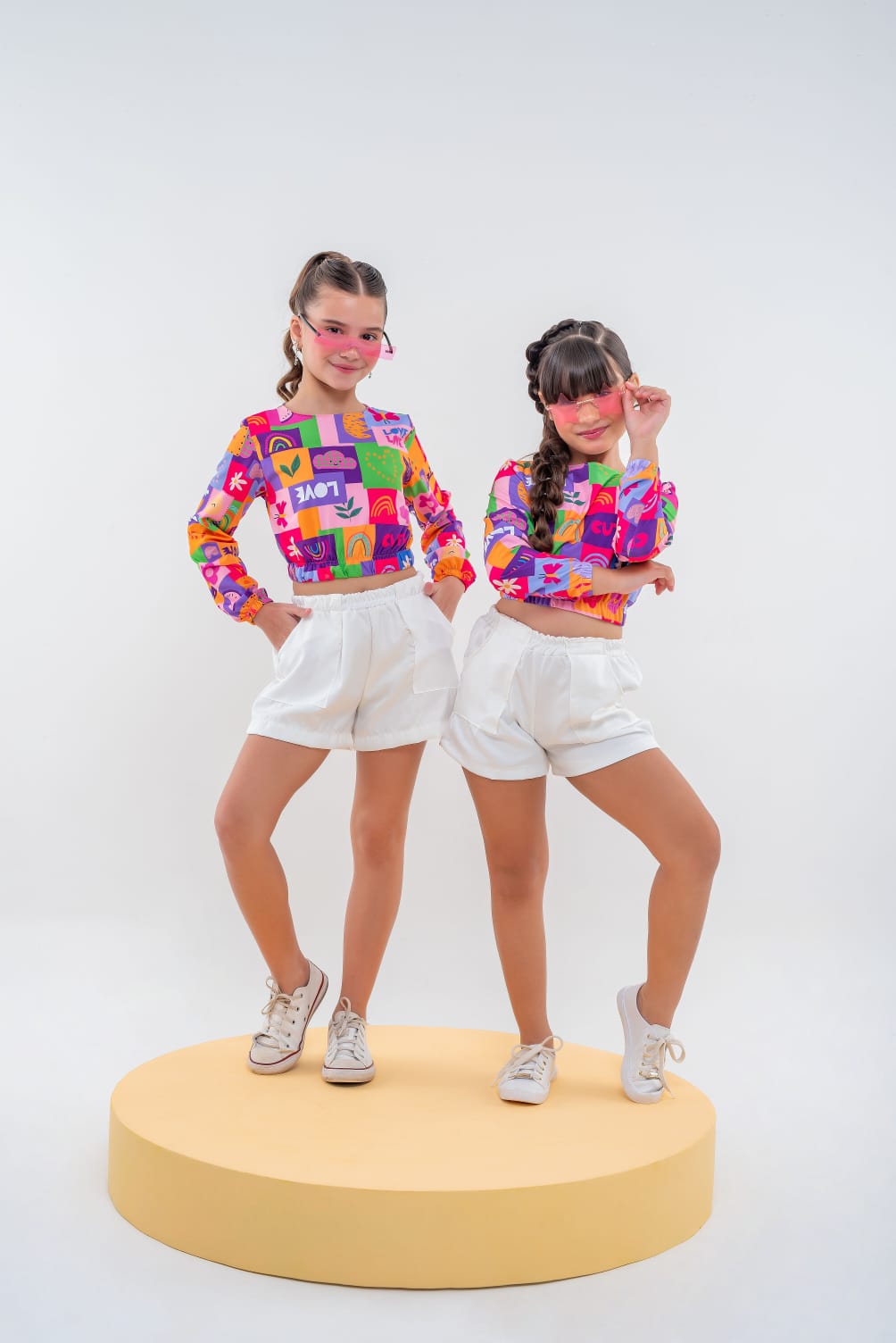 Conjunto Infantil para menina composto de Short Alfaiataria + Croped Manga Longa.