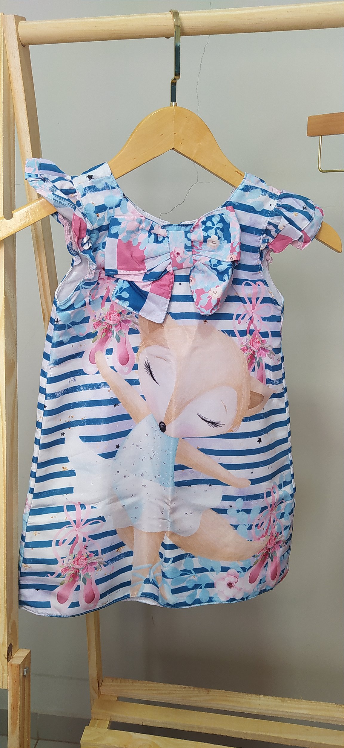 Vestido estampa raposa bailarina e acompanha a roupa da boneca na mesma estampa