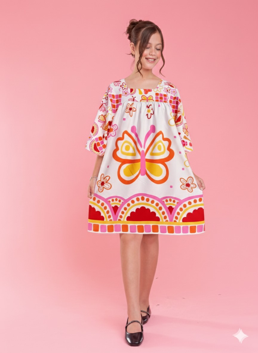 o vestido que fica super soltinho no corpo da criança